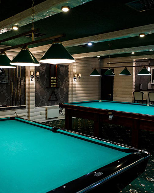 В зале установлено 2 бильярдных стола:Русский бильярд Американский бильярд